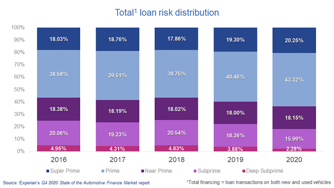 In the early days of COVID-19, we could attribute the shift to heavy incentives offered to keep consumers purchasing vehicles, and we saw some residual effect of carryover incentives in Q4. Additionally, circumstances like inventory shortages and availability of stimulus funds played a role in making new vehicles more attractive to prime and super prime consumers. If incentives remain high in 2021, this trend could continue.