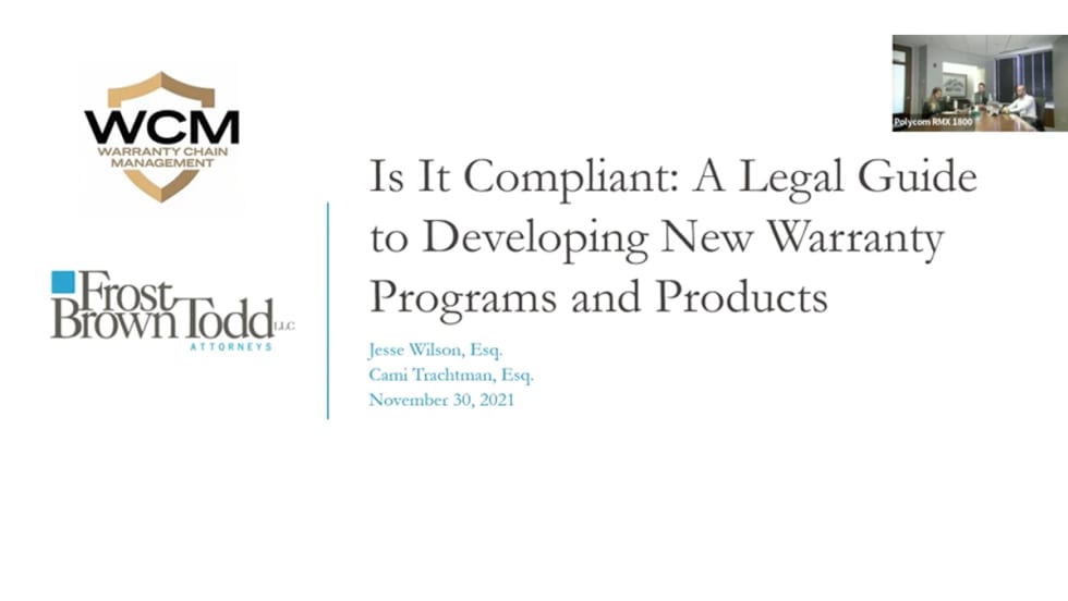 During "Is It Compliant: A Legal Guide to Developing New Warranty Programs and Products" a legal tag-team dives into the legal consideratins and concerns that must be addressed when developing and launching new products, services and programs within the warranty industry.