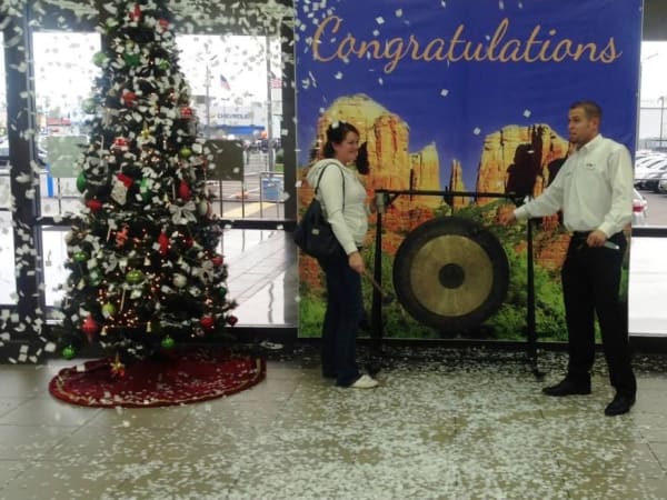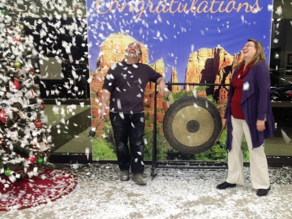 Customers at Bell Ford celebrate the holidays and their new vehicle purchase!