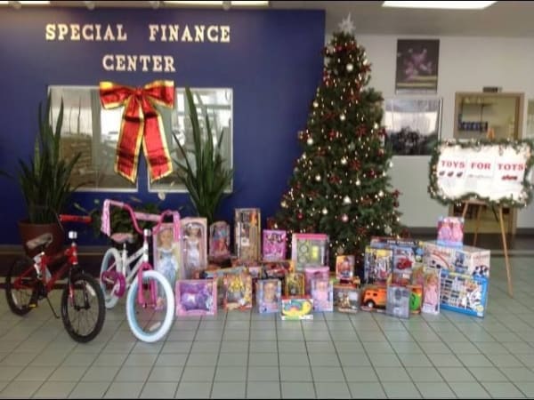 Manhattan Jeep Chrysler Dodge is collecting donations for Toys for Tots.